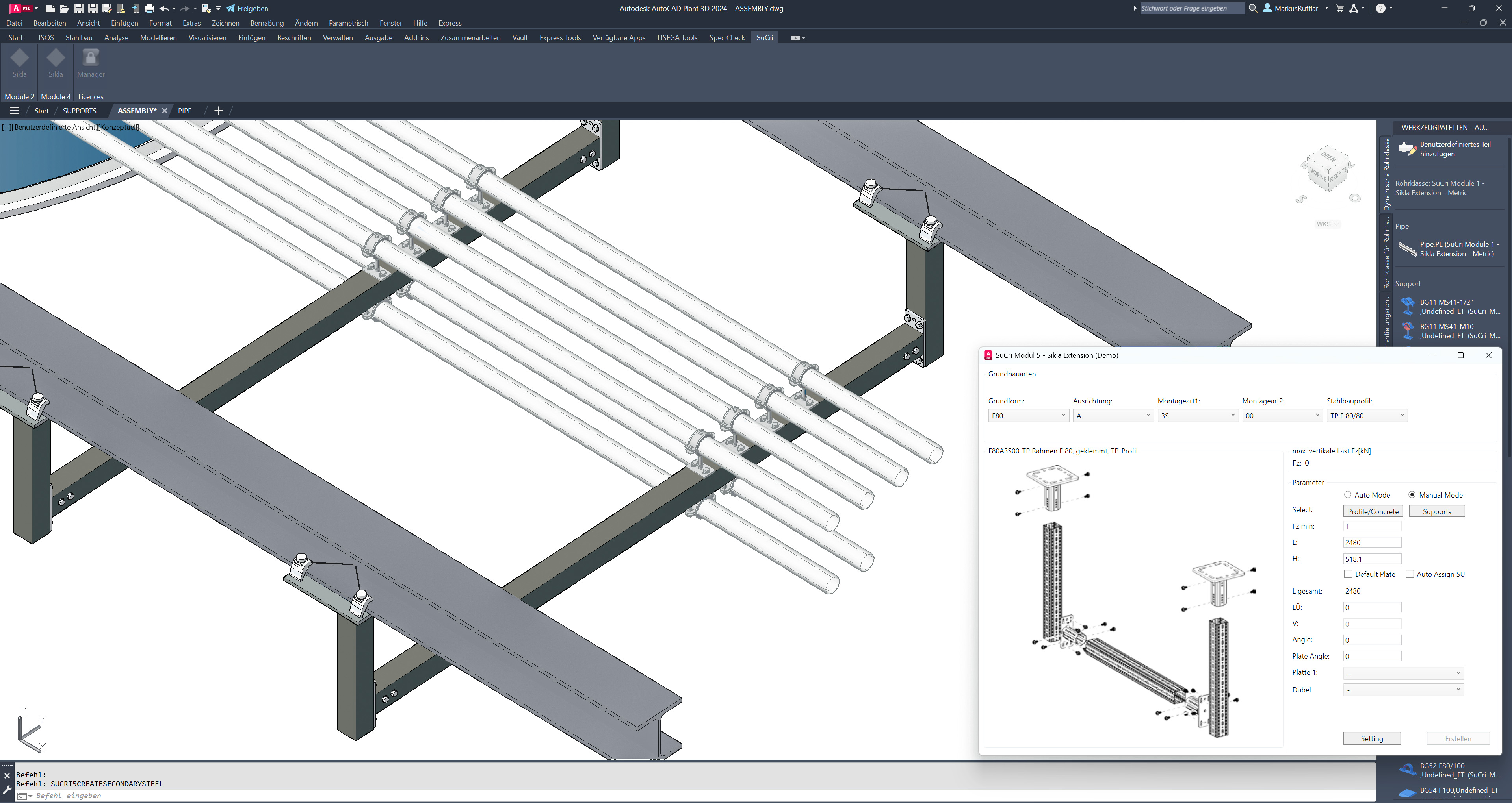SuCri® ist ein innovatives Plugin für AutoCAD®, das die Planung von Rohrhalterungen sowie Primär- und Sekundärstahlbauten deutlich vereinfacht.